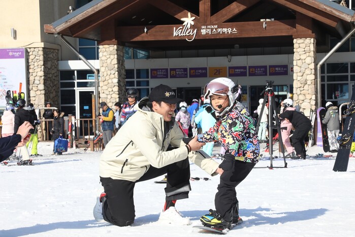 | ▲ 김상겸 선수가 어린이 고객을 대상으로 원포인트 레슨을 진행하고 있다. [사진=강원랜드] |