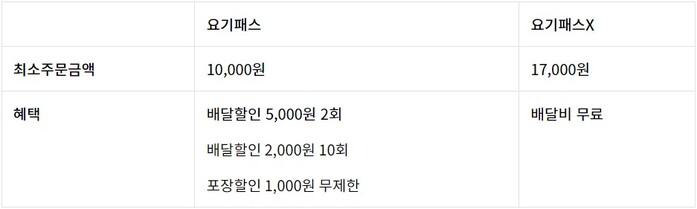 요기패스보다 7000원 높은 최소 주문 금액이 요기패스X의 가장 큰 차이점이다.