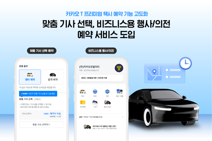 [메가경제=정진성 기자] 카카오모빌리티(대표 류긍선)가 택시 예약 기능을 강화해 일반 이용자를 위한 ‘맞춤 기사 선택'과 기업 고객을 위한 ‘비즈니스용 행사·의전' 예약 서비스를 도입한다고 20일 밝혔다. 이를 통해 이용자는 이동 목적이나 상황에 따른 택시 서비스를 선택해 예약할 수 있다.