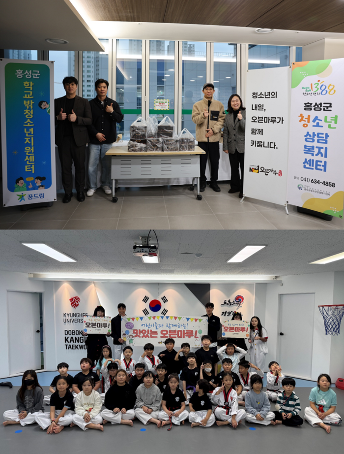 11월에는 두 건의 지역 연계 활동을 진행했다. 홍성내포신도시점은 홍성군 청소년상담복지센터가 주관한 ‘운영 보고회 및 학교 밖 청소년 지원센터 성장 보고회’에 대표 메뉴인 오리지널 현미베이크 치킨을 협찬하며 청소년들과 나눔의 시간을 함께했다. 이날 행사에는 지역 청소년들과 관계자들이 참석해 활동 성과를 공유하고 소통하는 시간을 가졌으며, 오븐마루치킨의 치킨 나눔을 통해 행사에 온기를 더했다.