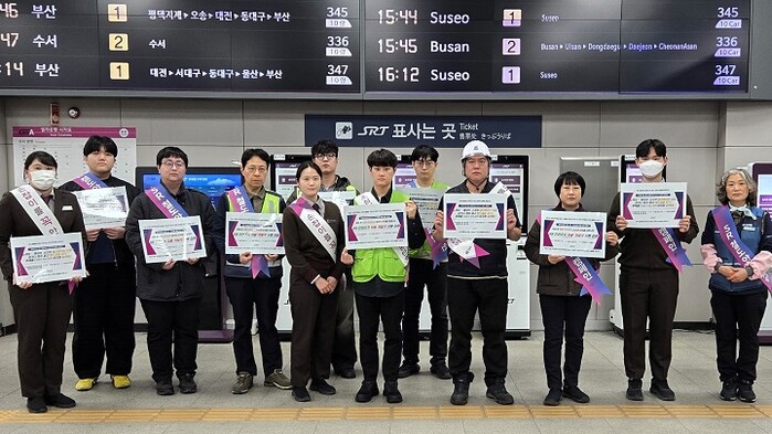 [메가경제=문기환 기자] SRT 운영사 에스알(SR)은 10일 동탄역에서 협력업체 직원들과 참여형 안전 캠페인을 열었다.