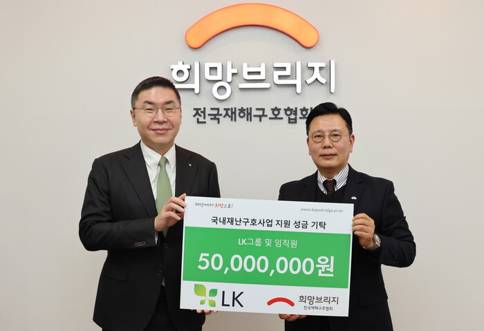 구본욱 LK 대표이사는 “계열사와 임직원들이 함께 마련한 기부금이 재난 피해 이웃들에게 작은 힘이 되길 바란다”며 “앞으로도 사회적 책임을 다하는 기업으로서 안전한 사회를 만드는 데 기여하겠다”고 말했다.