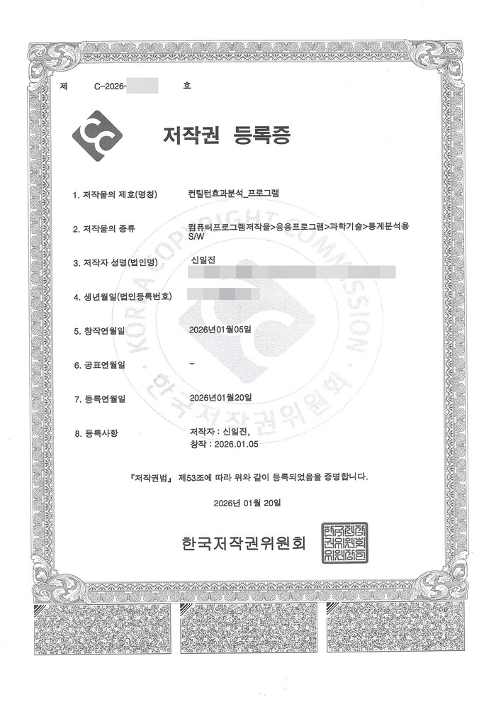 | ▲ 컨틸턴효과 분석 프로그램 저작권등록증 이미지 [사진=서울사이버대학교] |