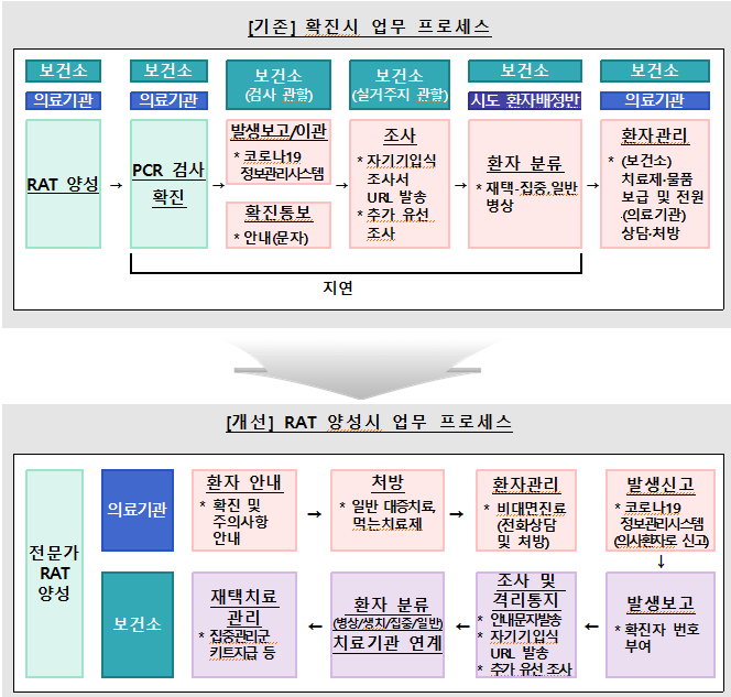 ▲ 전문가 신속항원검사(RAT) 양성 판정시 바뀌는 업무 프로세스. [보건복지부 제공] |