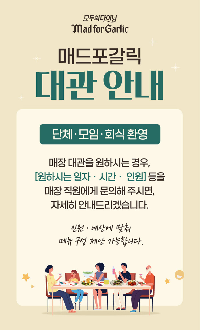 최근 매장별 대관 문의가 꾸준히 증가함에 따라, 매드포갈릭은 기존 일부 매장에서 운영하던 대관 서비스를 연말 시즌을 기점으로 전국 매장으로 확대할 방침이다.