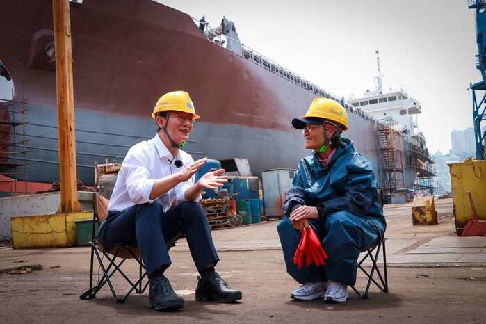 영도는 일제 강점기 우리나라 최초의 조선소가 들어섰던 곳으로, 선박 표면의 녹을 망치로 두드려 제거하는 ‘깡깡이’ 작업은 부산 해양산업을 상징하는 노동의 현장이다. 전 의원은 이곳에서 40년 넘게 수리조선소를 지켜온 ‘깡깡이 어머니’ 이복순(73) 씨를 만났다.