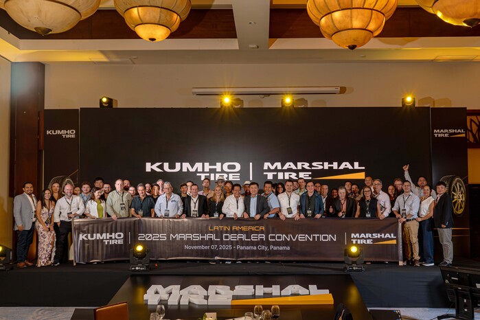 금호타이어는 이달 초 파나마 파나마시티에서 ‘2025 중남미 마샬 딜러 컨벤션(MARSHAL DEALER CONVENTION)’을 개최했다. 이번 행사에는 중남미 12개국 17개 주요 딜러사 관계자 40여명이 참석했으며, 금호타이어의 수출용 브랜드인 마샬(MARSHAL)의 운영 전략과 주요 신제품을 소개하는 시간을 가졌다. 이번 행사에는 금호타이어 영업총괄 임승빈 부사장, 중남미영업부문 조동근 상무, Commercial 영업부문 오준석 상무 등이 참석하였다.