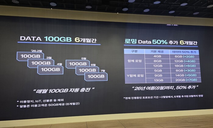 해외 이용 고객 편의를 위해 로밍 데이터를 50% 추가 제공하고 이와 동일한 내용으로 현재 운영 중인 로밍 관련 프로그램은 6개월 연장해 2026년 8월까지 운영한다.