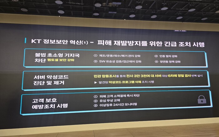 | ▲KT가 피해 재발방지를 위해 시행한 긴급 조치 자료. [사진=메가경제] |
