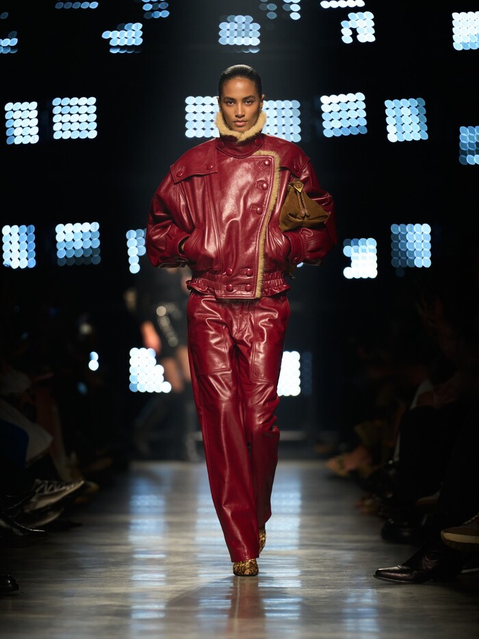 컬렉션은 밤의 도시를 배경으로 자유롭고 당당한 여성의 이미지를 표현했다. 강렬한 레드 팬츠에 박시한 재킷을 매치한 스타일링을 통해 브랜드 특유의 자연스럽고 세련된 분위기를 강조했다. 반짝이는 셔츠를 재킷 안에 매치하거나 가벼운 드레스 위에 봄버 재킷을 겹쳐 입는 등 낮과 밤을 넘나드는 스타일링도 제안했다.