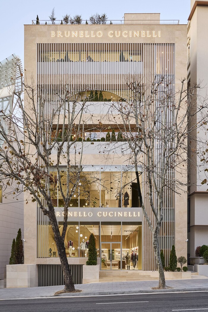 파사드 전면부는 고대부터 오늘날까지 세계 유명 도시를 방문하는 사람들을 맞이해 온 관문이었던 ‘아치’ 디자인을 적용했다. 2014년 브루넬로 쿠치넬리는 2500년 된 고대의 아치 ‘에트루리아 문’의 복원을 추진했으며, 이는 이번 플래그십스토어의 파사드 디자인에도 영향을 미쳤다.