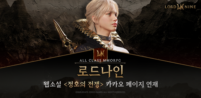 [메가경제=정호 기자] 스마일게이트는 올클래스(ALL CLASS) MMORPG(다중접속역할수행게임) ‘로드나인(개발사 엔엑스쓰리게임즈)’의 웹소설 ‘정오의 전쟁’을 카카오페이지에서 정식 연재한다고 4일 밝혔다.