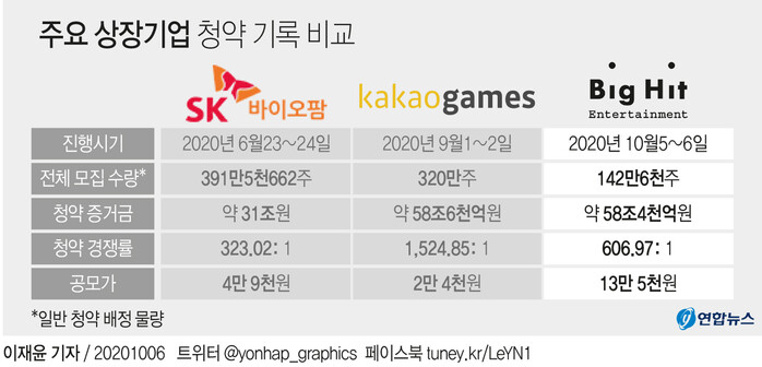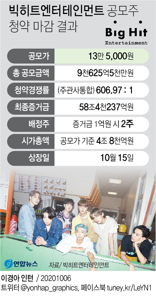 ▲ 빅히트엔터테인먼트 공모주 청약 마감 결과. [그래픽= 연합뉴스] |