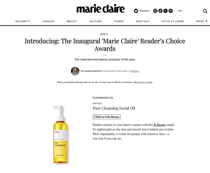 업계에서는 전문가 중심 평가(얼루어·뉴뷰티)와 소비자 투표 기반 평가(마리끌레르)를 모두 석권했다는 점에서 ‘제품력+대중성’을 동시에 확보한 사례로 보고 있다. 북미 시장에서 ‘대중픽’으로 자리 잡으며 K-뷰티 대표 클렌징 제품으로서의 입지를 강화하고 있다는 분석이다.