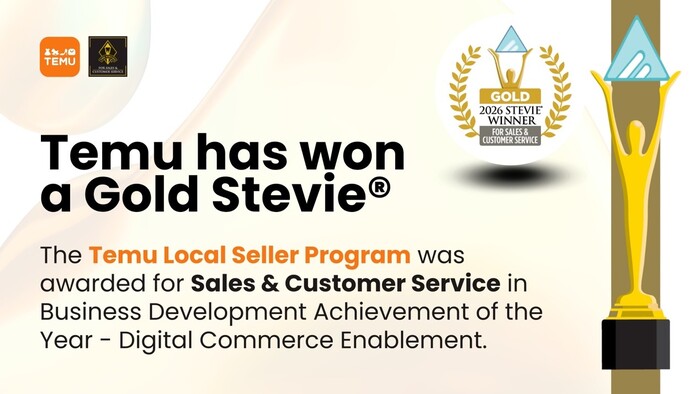 [메가경제=심영범 기자]글로벌 이커머스 플랫폼 테무(Temu)가 자사 ‘로컬 투 로컬(Local-to-Local·L2L)’ 프로그램으로 제20회 스티비 어워드(Stevie® Awards)에서 ‘올해의 비즈니스 개발 성과-디지털 커머스 활성화’ 부문 금상을 수상했다고 12일 밝혔다.