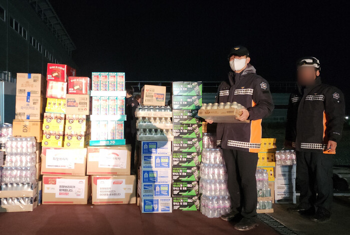 지원된 소방관 출동 키트는 ▲방진 마스크 ▲스포츠 타월 ▲치약·칫솔 세트 ▲물티슈 ▲아카시아 꿀 스틱 ▲멀티비타민 등 총 14종의 필수 물품으로 구성됐다. 이와 함께 핫팩, 커피, 에너지바 등 1천만 원 상당의 물품도 지원돼 추운 겨울 현장에서 즉각적인 휴식과 에너지 보충이 가능하게 했다.
