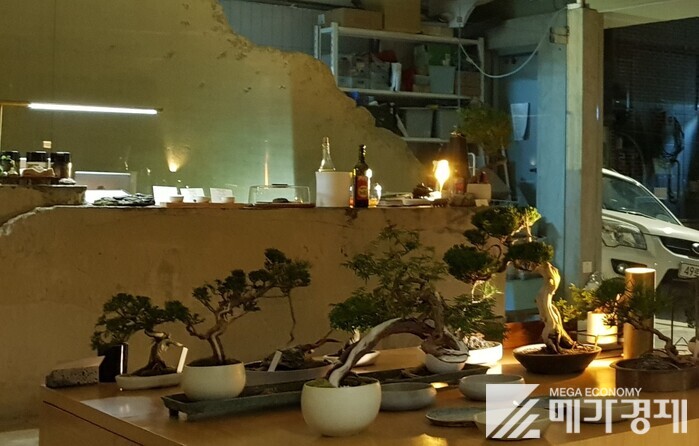 | ▲ 도심속 분재원 컨셉의 카페 겸 와인바 '에세테라' [사진=김형규 기자] |