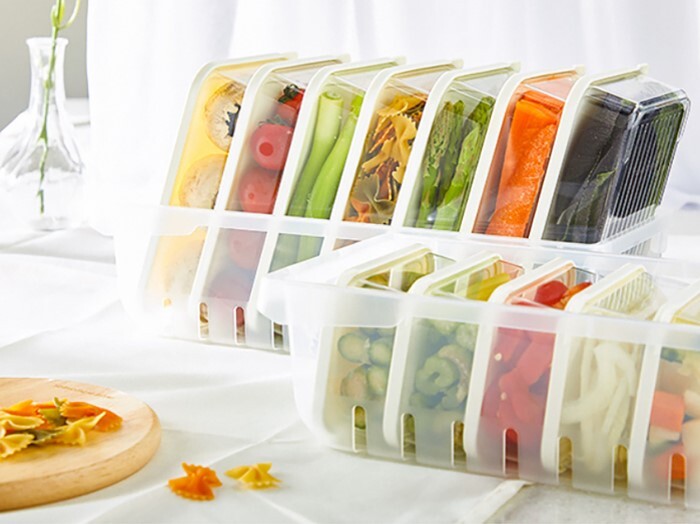 칸칸이 나뉘어져 내용물을 구분해 보관할 수 있는 ‘알알이쏙 용기’는 바닥면을 유연한 재질로 구성해 밑부분을 누르면 냉동된 내용물이 쏙 빠진다. 뚜껑 부분에 월, 일을 표시할 수 있는 슬라이더바가 있는 ‘약 300ml x 2구’ 용기는 보관일자를 체크하며 선입선출 관리를 하기 용이하고, ‘약 100ml x 4구’에는 고기, 채소 등 국거리를 1인분 용량으로 소분해두었다가 꺼내어 끓여먹기 좋다.
