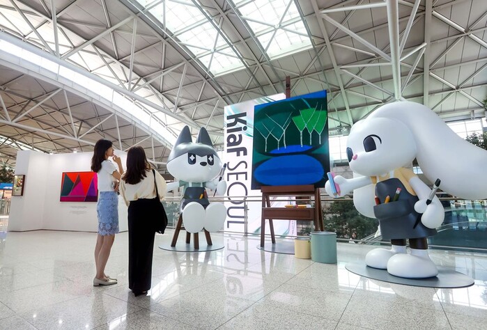 유 화백이 오랜 시간 작업에 사용했던 붓, 팔레트 나이프, 물감 등 작업 도구들은 국가유산수리기능자 ‘모리함’의 전통표구 기법으로 재해석돼, 예술과 기억의 아카이빙을 예술적으로 심화한다. 제1터미널 3층에서는 유영국의 대표작 <Work, 1979>를 테마로 한 폴앤바니 포토존은 자연의 고요함과 평온한 미적 체험을 제공하며 관람객의 감성을 자극한다.