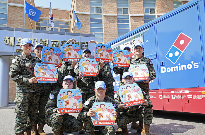 [메가경제=심영범 기자]도미노피자는 지난 25일 인천 계양구 국제평화지원단을 방문해 남수단재건지원단 한빛부대 장병들에게 피자를 전달하며 격려했다고 26일 밝혔다.