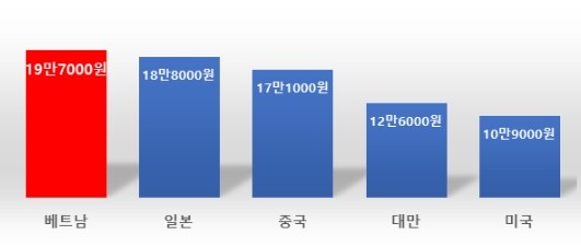 베트남 관광객은 국내 관광 소비로는 가장 ‘큰 손’이었다. BC카드가 2022년 외국관광객 국내 가맹점 소비현황 분석 결과 베트남 관광객은 중국, 일본 관광객 대비 인당 카드평균승인금액(승인금액을 승인건수로 나눈 수치)이 19만7000원으로 가장 높았고 전년 대비 89% 증가했다.