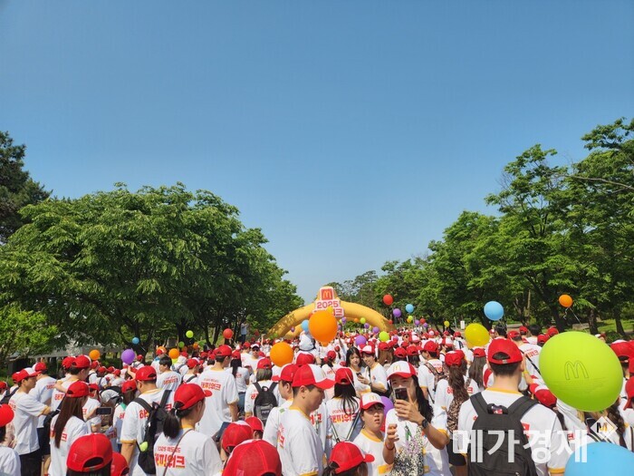 | ▲ 서울 마포구 상암동 월드컵 평화광장에 모인 2025 맥도날드 해피워크 참가자들의 모습.[사진=메가경제] |