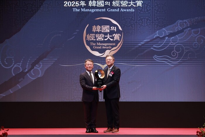 | ▲ 9일 서울 중구 신라호텔에서 열린 ‘2025 한국의 경영대상’에서 김연성 한국고객만족경영학회장(왼쪽)과 조영서 KB국민은행 AI·DT추진그룹 부행장(오른쪽)이 기념촬영을 하고 있다. [사진=KB국민은행] |