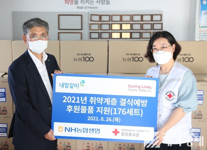 NH농협생명(대표이사 김인태)이 지난 26일 종로에 위치한 대한적십자사 중앙봉사관에서 코로나19 취약계층을 위한 꾸러미 전달식을 실시했다고 밝혔다.