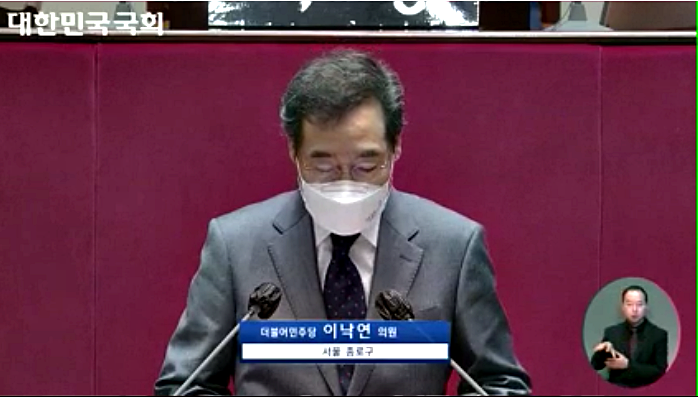 ▲ 더불어민주당 이낙연 전 대표가 15일 국회 본회의에서 자신의 의원 사직안 투표에 앞서 신상발언을 하고 있다. [국회인터넷의사중계시스템 캡처] |