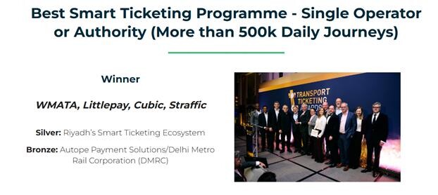 에스트래픽은 영국 런던에서 개최된 ‘Transport Ticketing Awards 2026’에서 워싱턴 메트로(WMATA), 리틀페이(Littlepay), 큐빅(Cubic)과 함께 ‘대규모 운영 부문 최우수 스마트 티켓팅 프로그램’ 상을 공동 수상했다.