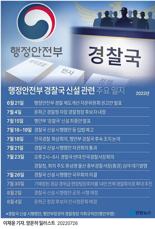 | ▲ 행정안전부 경찰국 신설 관련 주요 일지. [그래픽=연합뉴스] |