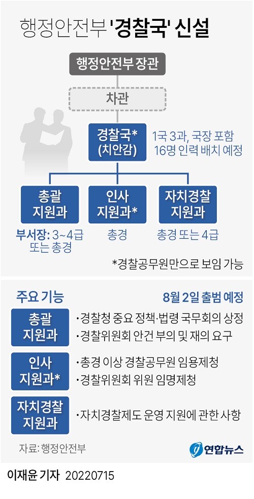 이에 따라 다음달 2일 행안부 내에 국장을 포함해 총 16명 인원으로 구성된 경찰국이 공식 출범한다.