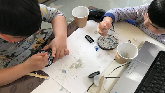 ▲ 광동제약 직원 가족이 홈 아트클래스 키트를 활용해 작품을 만들고 있다. [사진=광동제약 제공] |