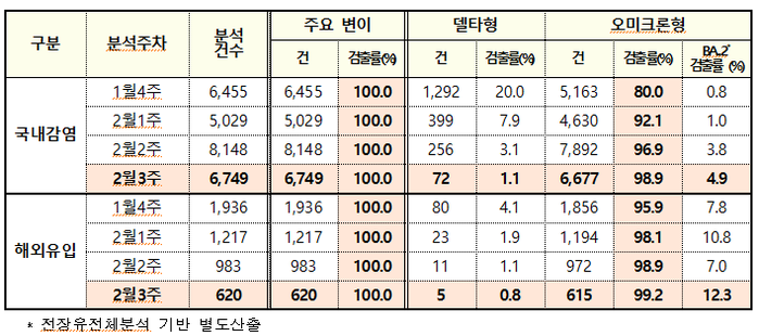 오미크론 검출률 국내감염 사례 98.9%...해외유입 사례 99.2%