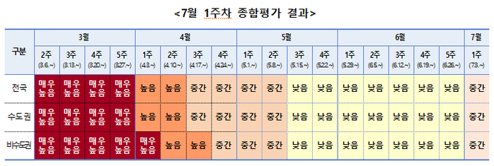 | ▲ 7월 1주차 종합평가 결과. [중앙방역대책본부 제공] |