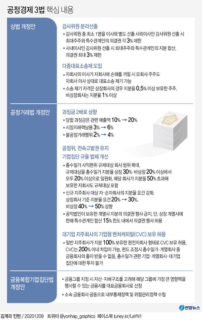 | ▲ 공정경제 3법 핵심 내용. [그래픽= 연합뉴스] |