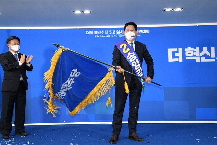 전면에서 민주당을 이끌게 된 송 대표는 민주당 원내사령탑인 윤호중 원내대표와 함께 재보선 결과로 확인된 등돌린 지지층을 회복하고 내년 3월 차기 대선을 공정하게 관리할 책무를 안게 됐다.