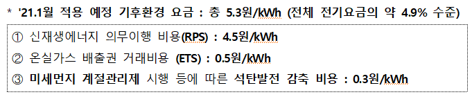 | ▲ 내년 1월 적용 예정 기후환경 요금. [출처= 산업통상자원부] |