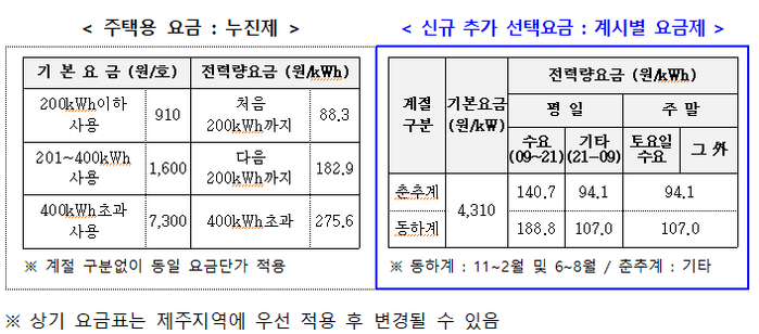 또한, 산업·일반용 등 다른 용도에서 도입·운영 중인 계절별·시간대별 선택 요금제를 주택용에도 도입한다.