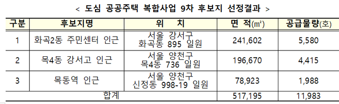 ▲ 도심 공공주택 복합사업 9차 후보지 선정결과. [국토교통부 제공] |