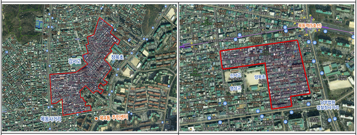 ▲ 서울 양천구 목4동 강서고 인근(왼쪽)과 서울 양천구 목동역 인근. [국토교통부 제공] |