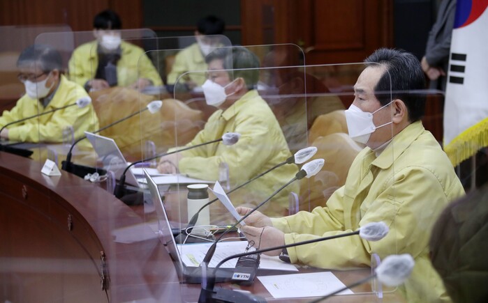 ▲ 정세균 국무총리가 24일 오후 정부서울청사에서 열린 코로나19 대응 중앙재난안전대책본부(중대본) 회의에서 발언하고 있다. [사진= 연합뉴스] |