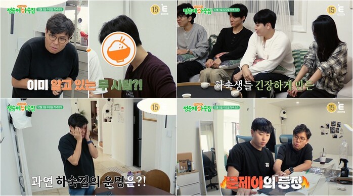 이렇게 1기 하숙생 모두가 집결한 가운데, 정승제는 이들을 위해 맞춤 과외에 나서는 등 ‘일타 강사’ 본능을 내뿜는다. 하지만 그의 뒷목을 잡게 만드는 문제아(?)가 등장해 상황이 급반전된다. 정승제는 뭔가 마뜩지 않은 눈빛을 보이더니, 하숙생을 향해 “1강부터 다시 해!”, “안 되면 밥 없다!”라고 호통 치다가 그대로 문을 닫고 나가버린다