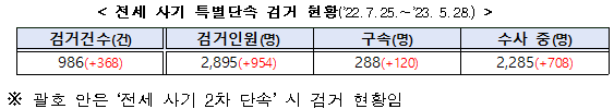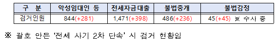 1‧2차 단속을 통해 각종 전세사기에 가담해 불법 중개행위를 한 혐의로 모두 486명이 검거됐다. 1차 특별단속에서 250명, 2차 단속에서 236명이 각각 적발됐다.
